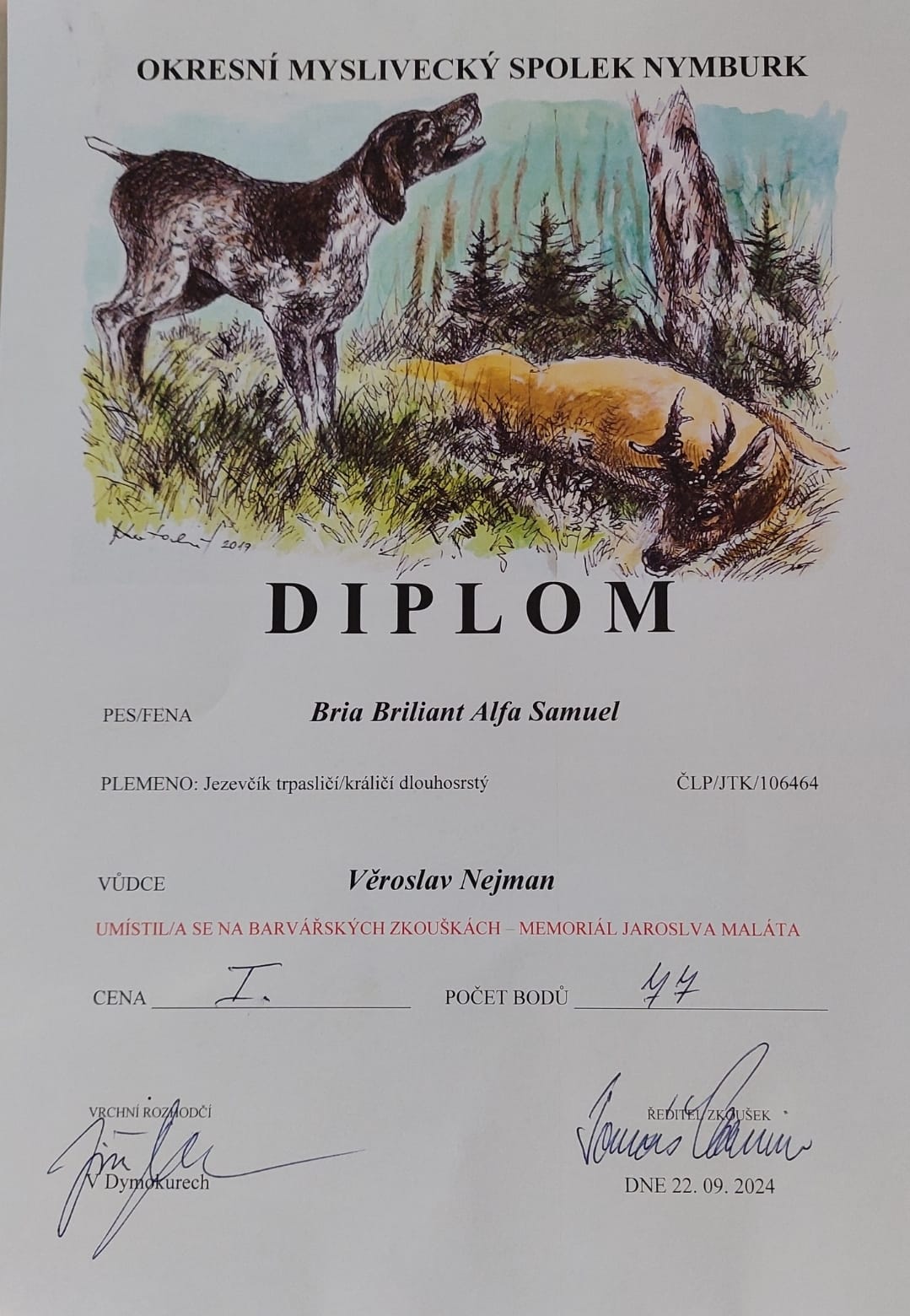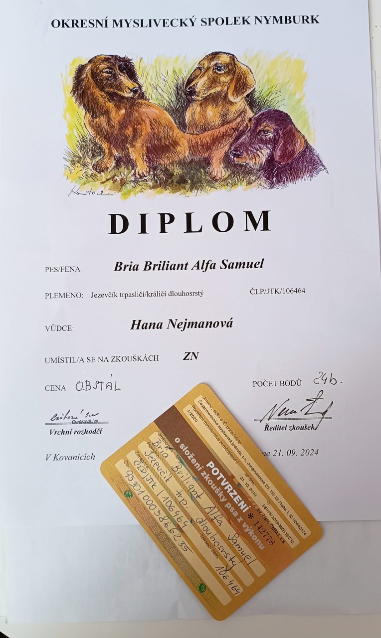 Obě se umístili v pracovním poháru klubu chovatelů jezevčíku 2024.