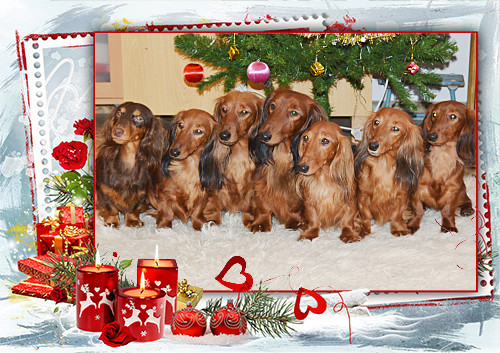 Jak jistě víte Chaimé je králičí hnědo pálená fenka (ostatní smečka je zbarvením červená) a k ní jsme zvolili fešáka hnědo páleného tygra, jezevčíka trpasličího. Podrobnosti o tomto spojení najdete v sekci - štěňata - naše nabídka.