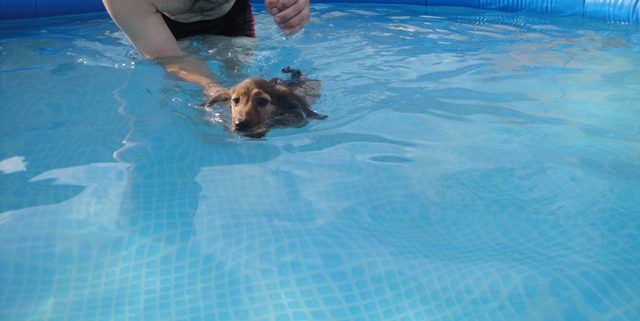 30.07.2014 18:30Máme tady léto, a jak to tak bývá většinu času trávíme na zahradě a ve vodě. Naše omladina Elza a Efram si plavou v bazénu a dělají samou lotrovinu, se smečkou si pěkně hrají a provokují.... hlavně naší seniorku Berynku. S Arčínkou (babičkou) si ovšem vyhrají nejvíc, ta je vychovává ale také brání. Mamka Anelly se také přidídává do psích her a tak tu máme veselo.