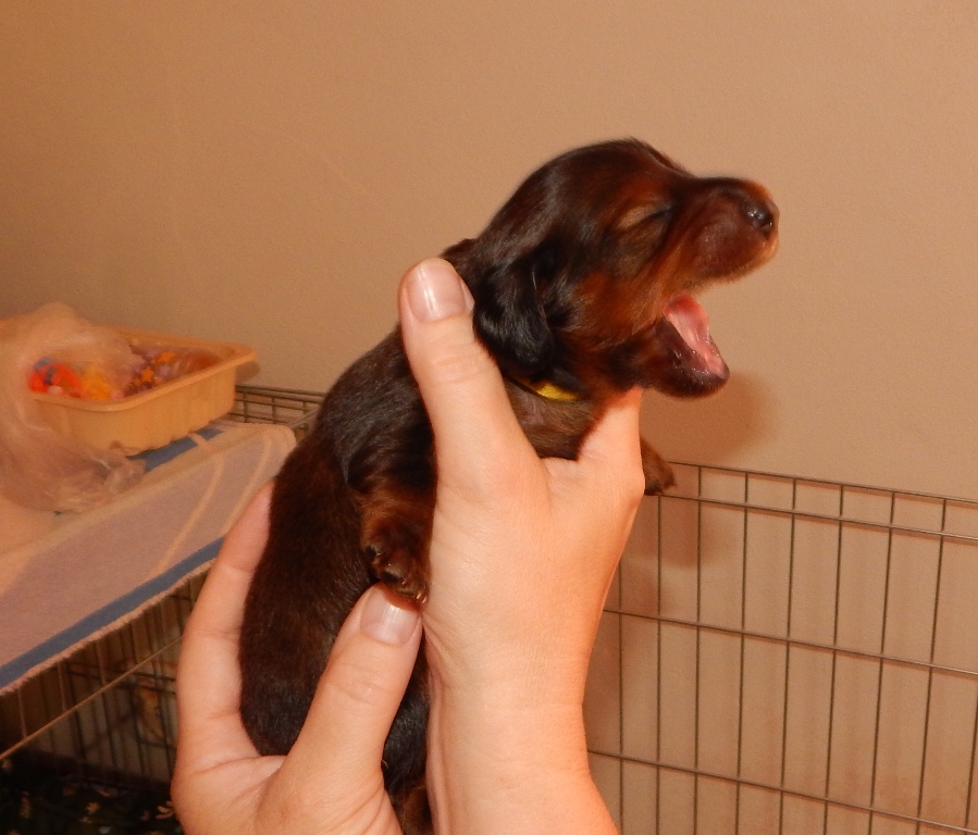 Paterčata budou každým dnem otevírat oči, na fotkách je to již hezky vidět. Jsou to šídla, už čekám kdo vypadne z pelíšku první! Staví se na nožičky a dělají první krůčky. V úterý nás čeká první odčervení.