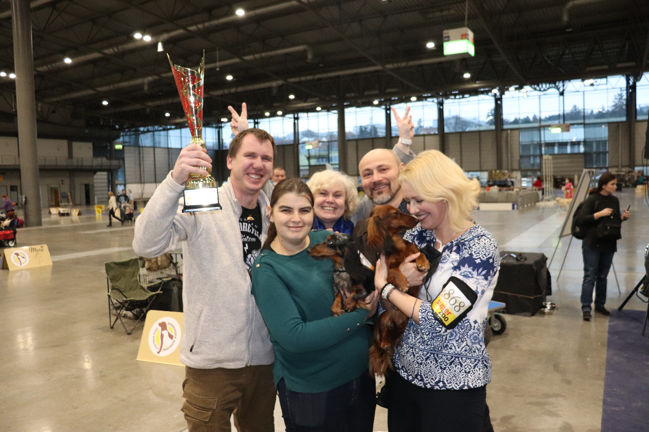Všichni co soutěžili mají již svůj článek na svém FB profilu a já sem vložím jen zmínku o rodičich a výsledky jen těch co pocházejí z naší chovatelské stanice Alfa Samuel až na jednu vyjímku. Musím zde zmínit i to, že jsme po prve v životě zůstali až do konce celé výstavy. Důvodem byla naše vnučka Marilka která zazářila jako hvězda a doufáme, že zářit bude ještě mnoho let! Tohle úžasné 11,5 měsíční mládě totiž vyhrálo co se dalo, nejen ve své třídě ale i nejlepšího mladého a nejlepšího v plemeni a v neposlední řadě nejlepšího jezevčíka ze všech devíti plemen.
