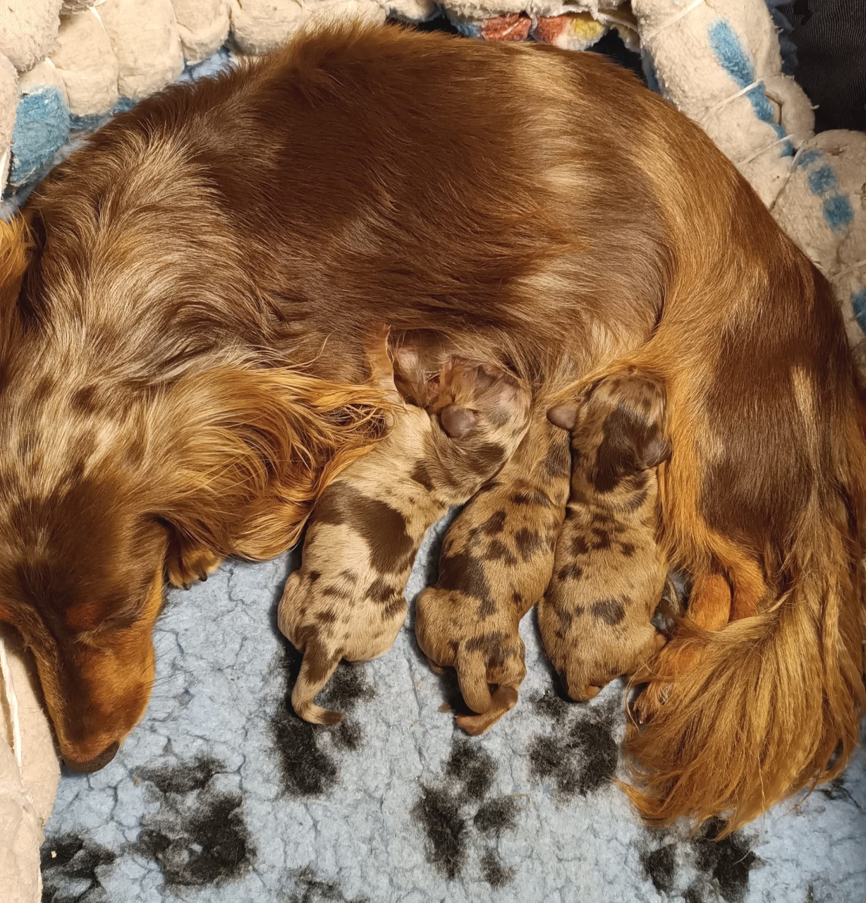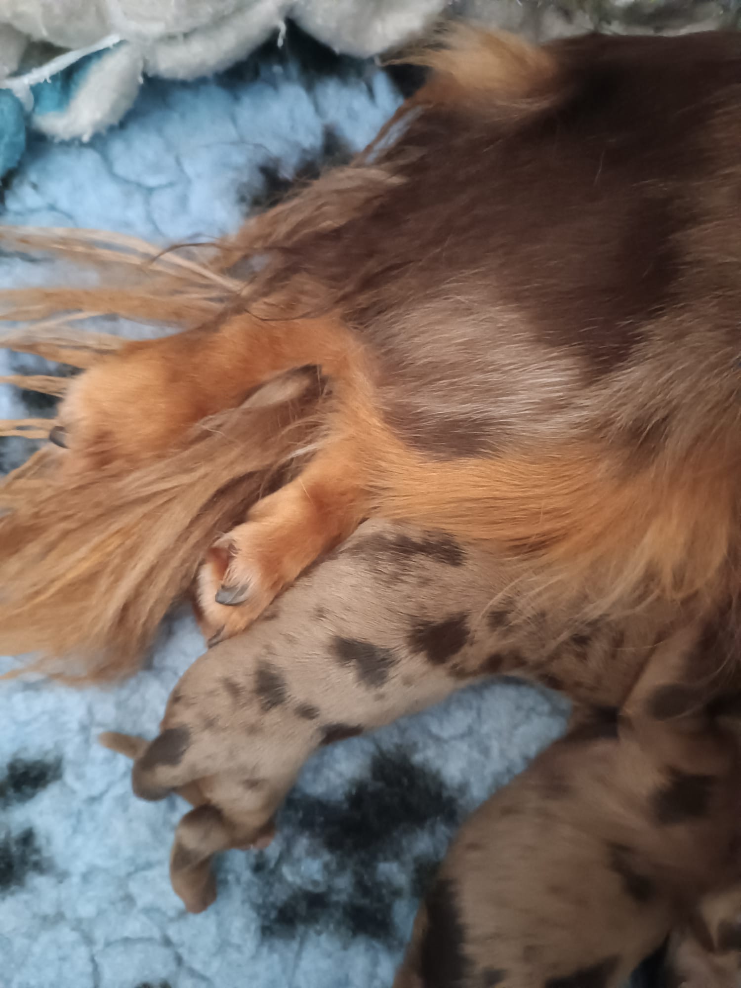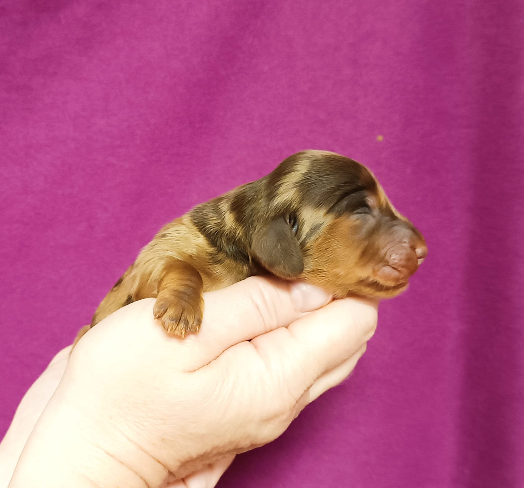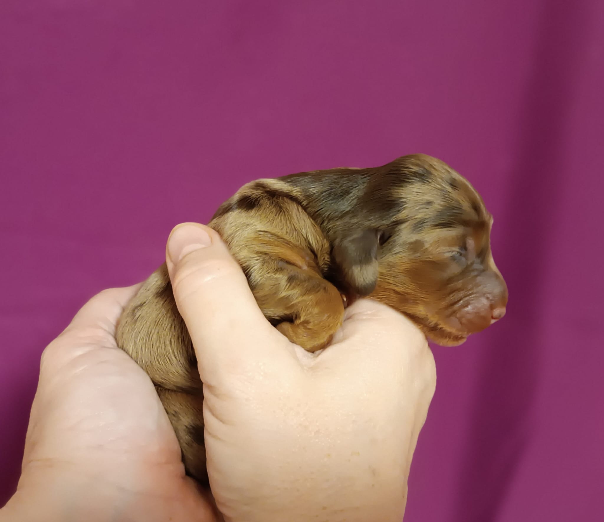 v 7,35 hod. je to pejsek ve zbarvení hnědá s pálením merle, vážíl 234g.