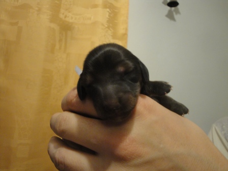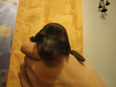 Druhá fenka Delphine - čas - 6,30 hod. porodní váha 216 g.