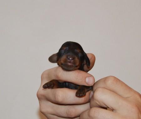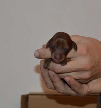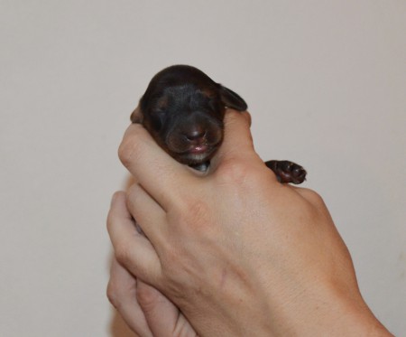 Druhé štěndo přišlo na svět v 18.45 a je to pejsek vážící 197 g a také ten se přisál téměř okamžitě. Na třetí štěně, fenku jsme si museli počkat poněkud déle, narodila se ve 20,30 hodin a vážíla 206 g. Tahle fenka je tedy pěkně slyšet a sama se také přisála. O 20 minut později se narodil poslední potomek z tohoto spojení a je to opět fenečka vážící 214g. Tuhle fenku jsem usela přiložit ke struku a chvilku trvalo než se přisála.