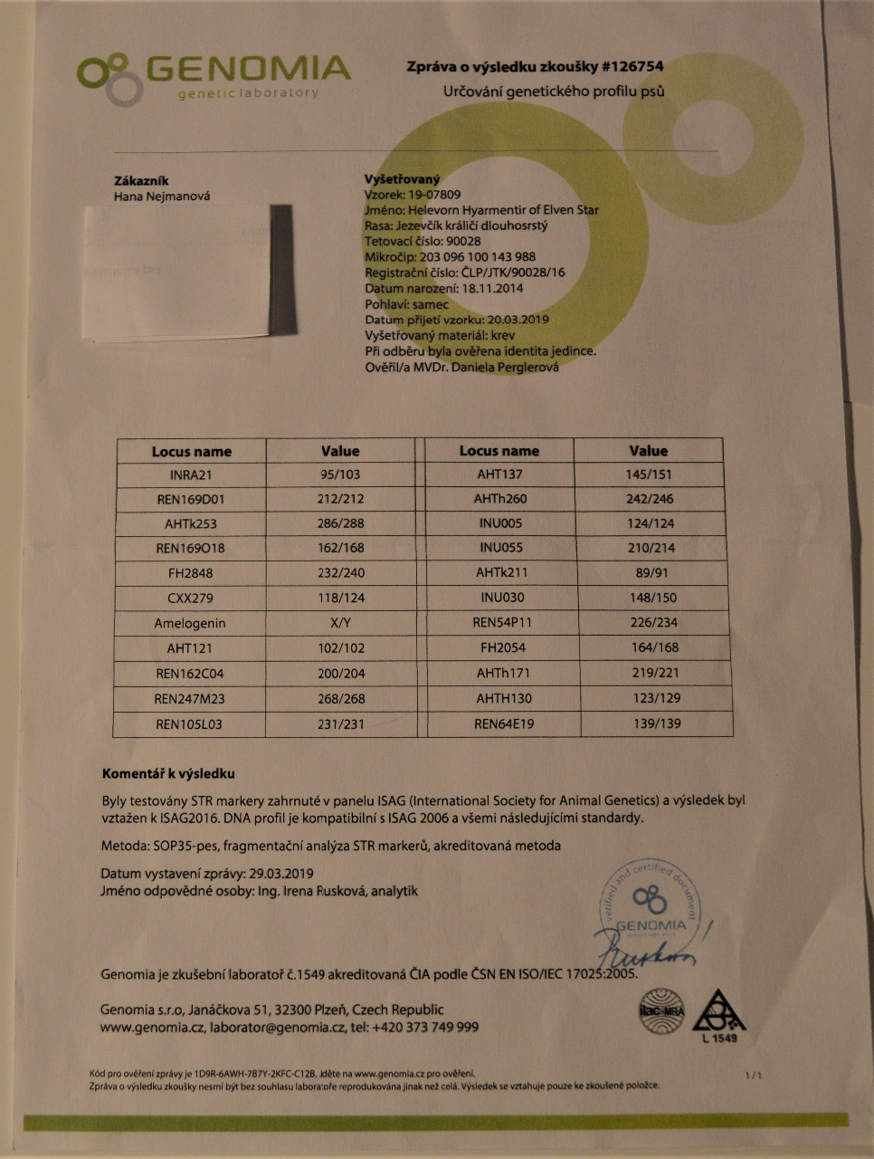 Test genetický profil psa DNA