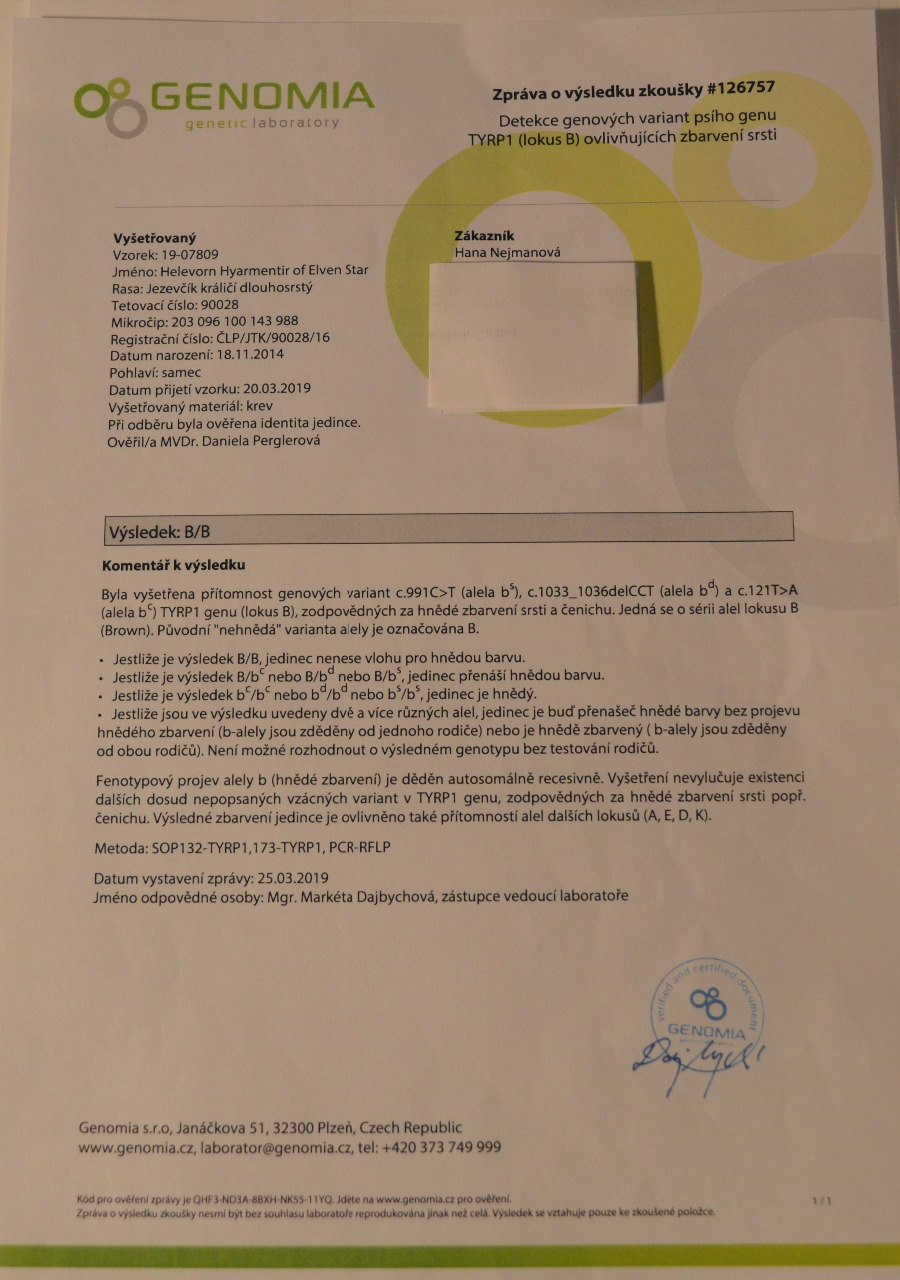 Test na hnědý gen který nemá.